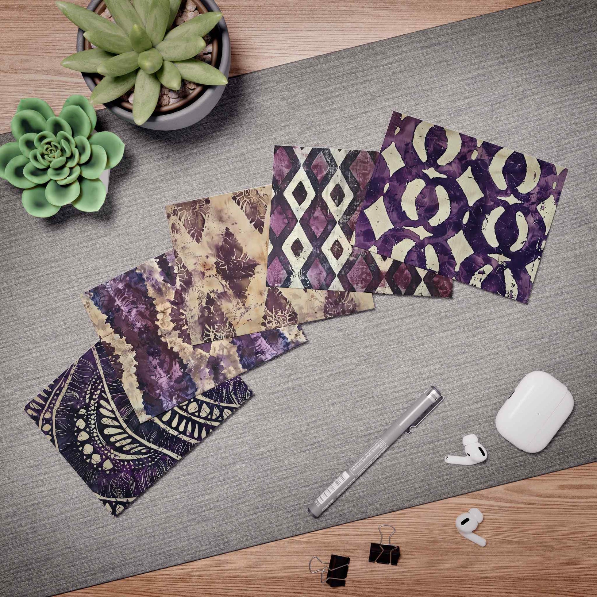 Step up your stationery game with our Amethyst in Batik Multi-Design Blank Note Cards. These exquisite cards, each measuring 5.5" x 4.25", feature an array of stunning Batik patterns in rich amethyst tones. Perfect for any occasion, these blank note cards offer a touch of cultural elegance and sophistication, allowing your personal messages to shine. Whether you're sending a heartfelt thank you, a thoughtful note, or a simple hello, these cards provide the perfect canvas for your words. Let the luxurious blend of amethyst and Batik design elevate your correspondence, making every note a memorable one.