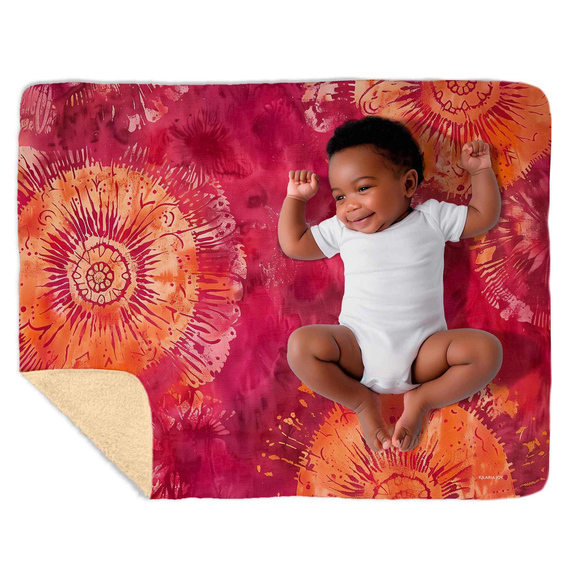 The Batik Sunset Snuggly Sherpa Baby Blanket is a beautiful blend of warmth and serenity for your little one. This blanket wraps your baby in cozy comfort, creating moments that feel as peaceful as a sunset. Perfect as a gift, it's designed to bring a touch of sunset magic to your baby's world.