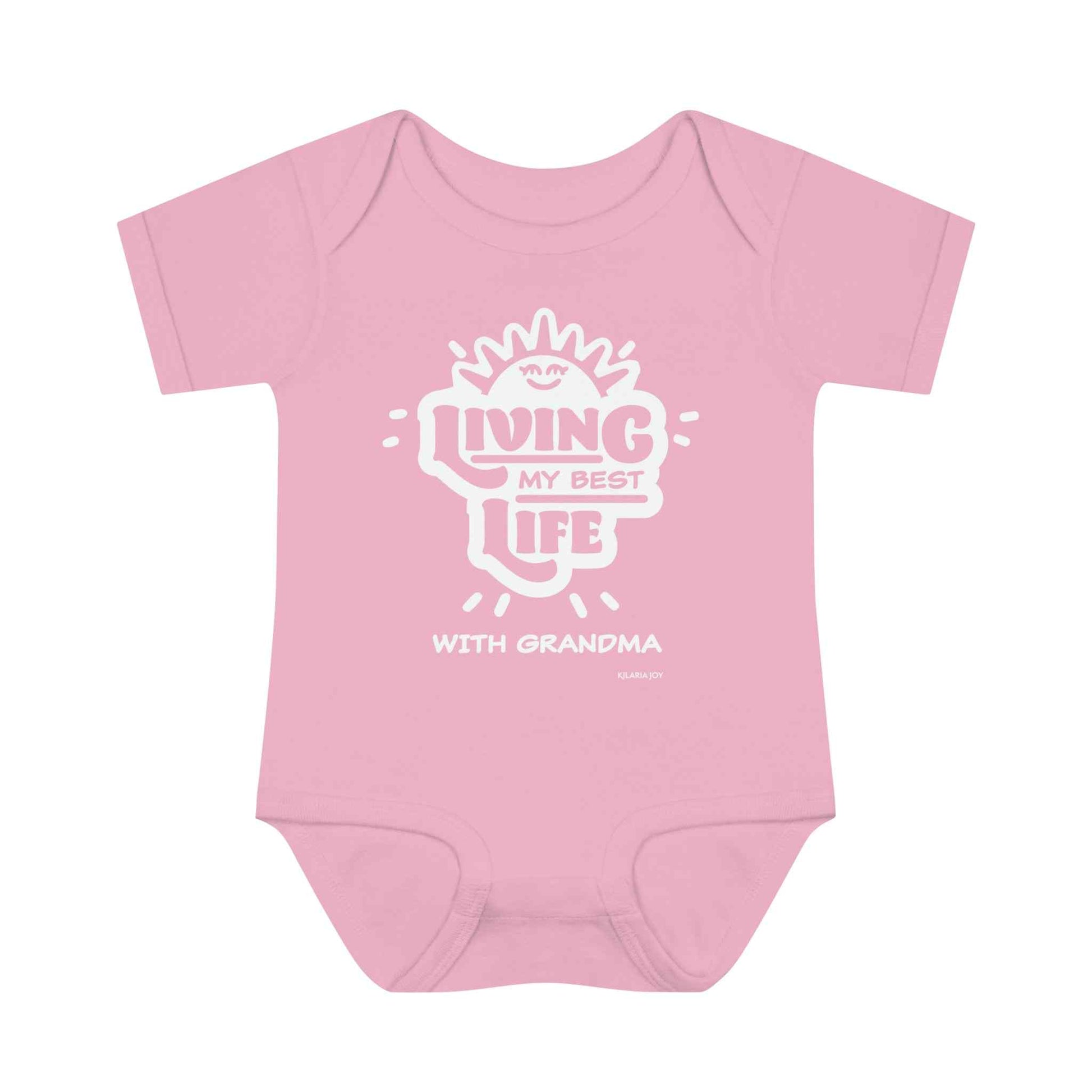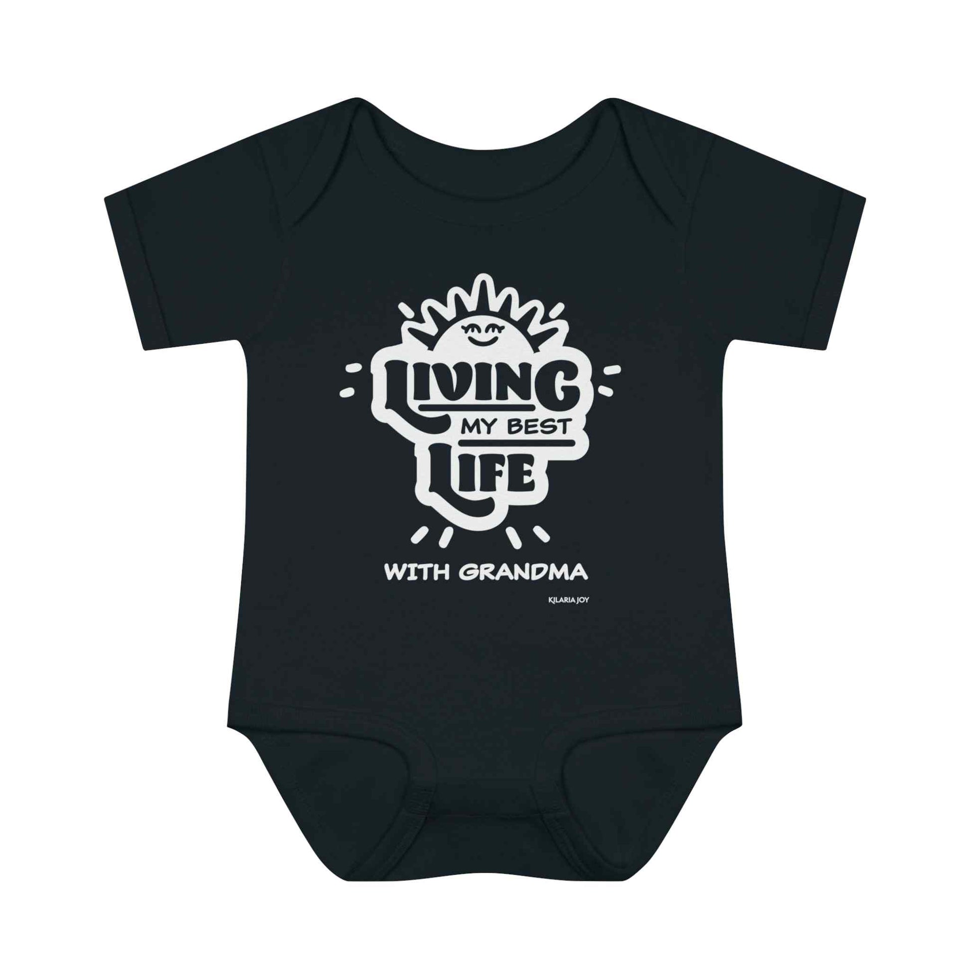 The Best Life Grandma Infant Baby Bodysuit is all about those special moments with the coolest grandma around. This adorable piece is a shoutout to living the dream, filled with love, laughs, and grandma's endless spoiling.
