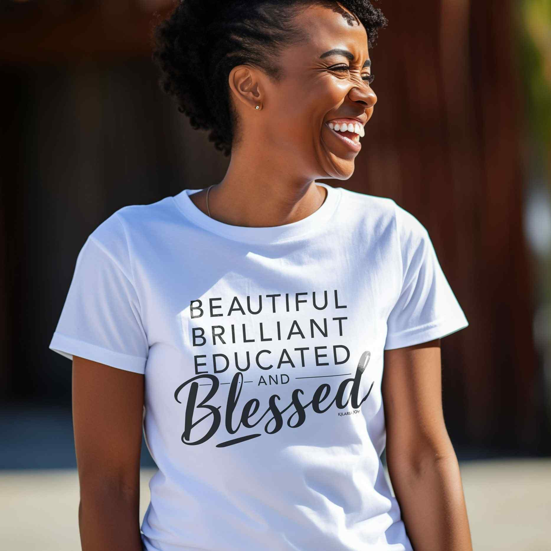 The Counting Blessings Women's Classic Modern Fit T-Shirt is here to remind you that you are beautiful, brilliant, educated, and blessed—wear it and let the world see you shine!