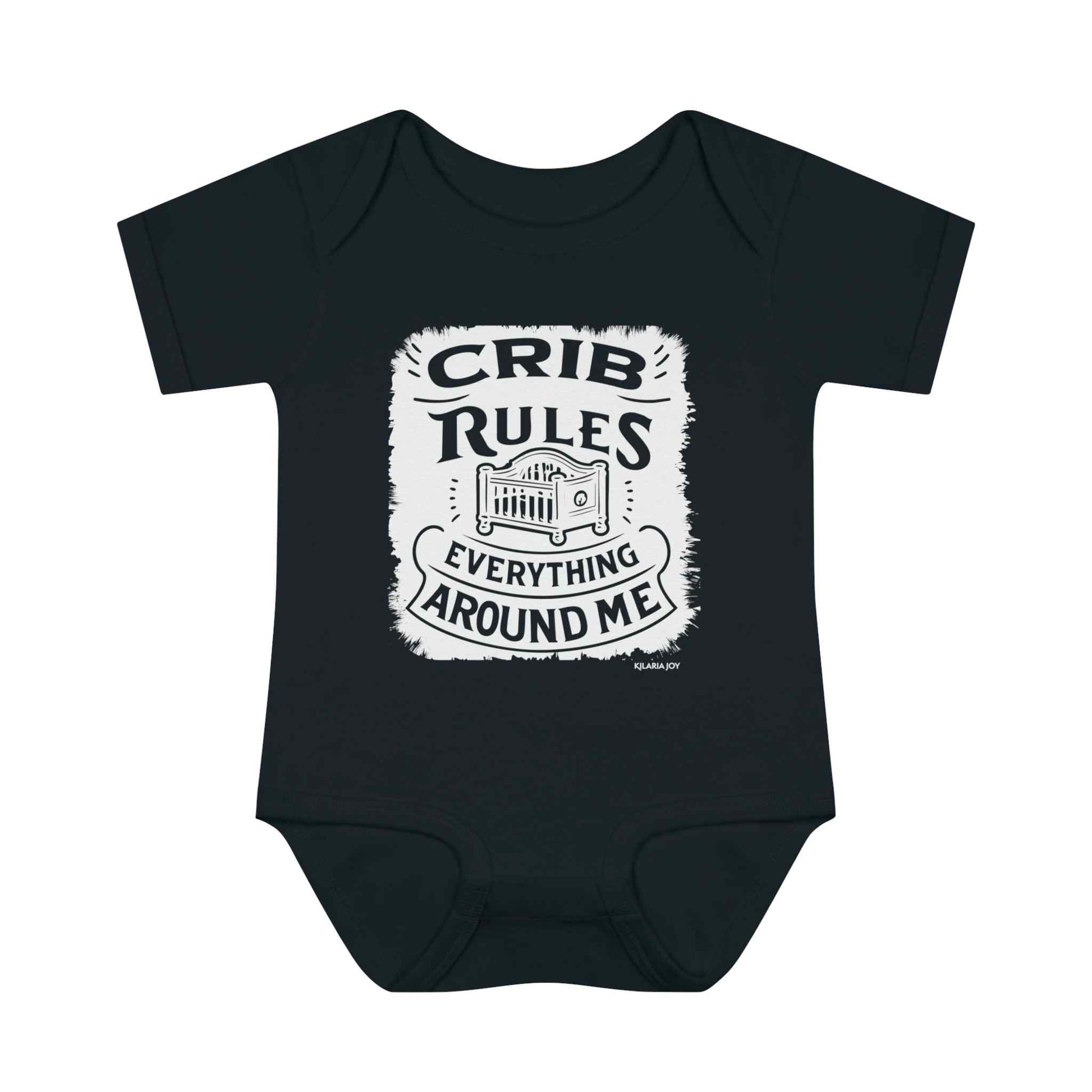 The Crib Rules Baby Bodysuit is the ultimate gear for your little one who's already ruling the roost. Perfect for those endless snuggle sessions and sweet dreams, your baby will be the boss of bedtime in this bodysuit. Get ready for a whole lot of charm and cuddles, because your mini-royalty is here to rule!