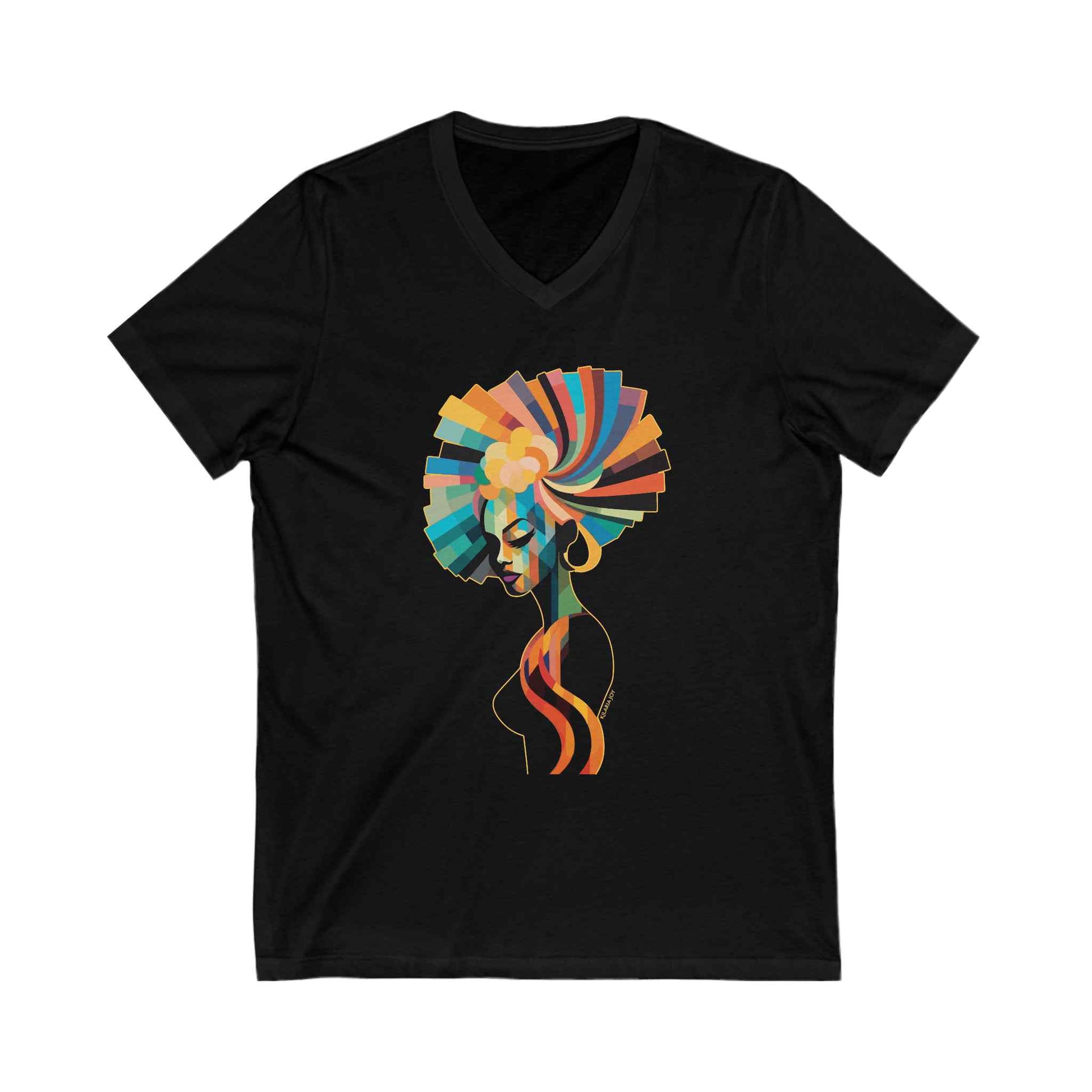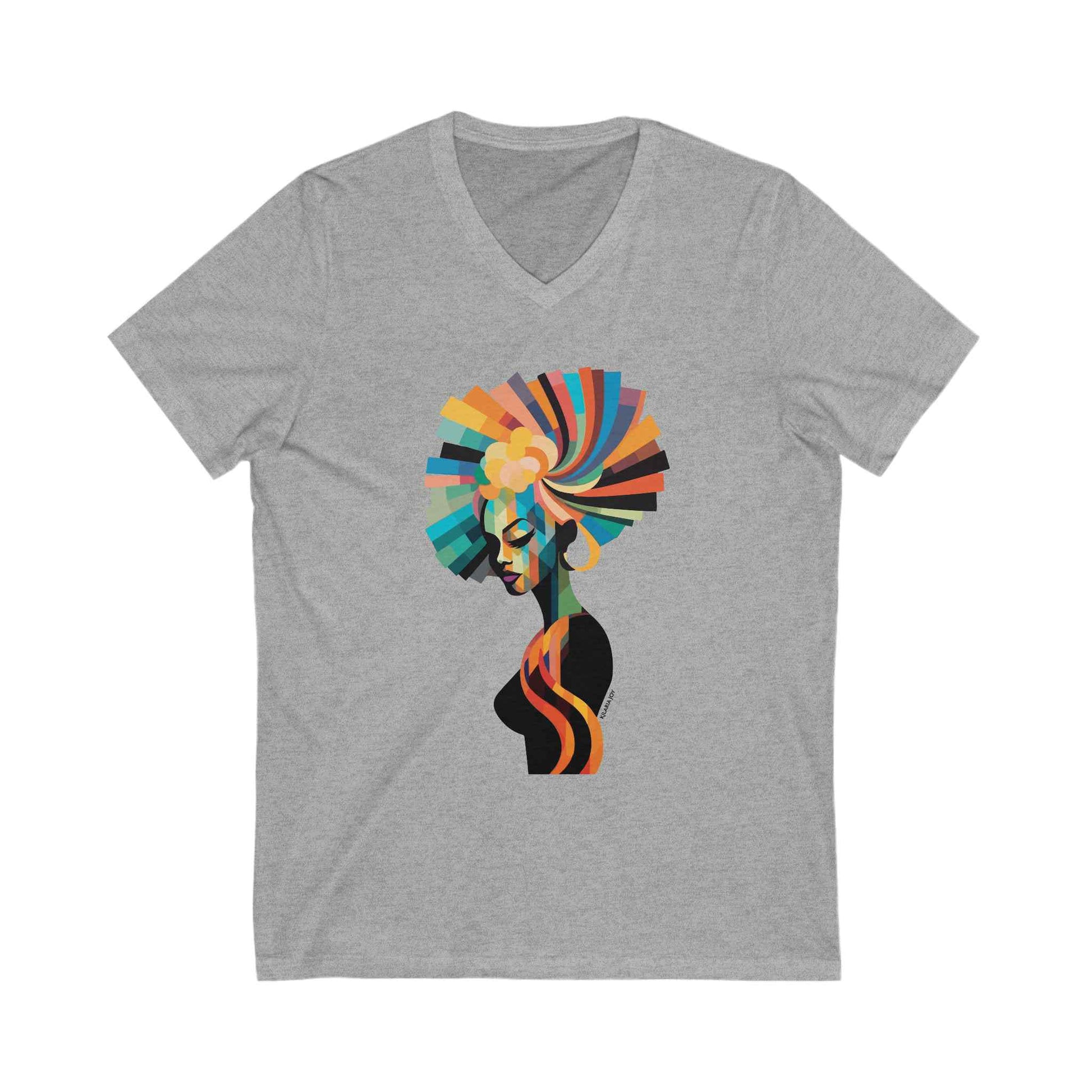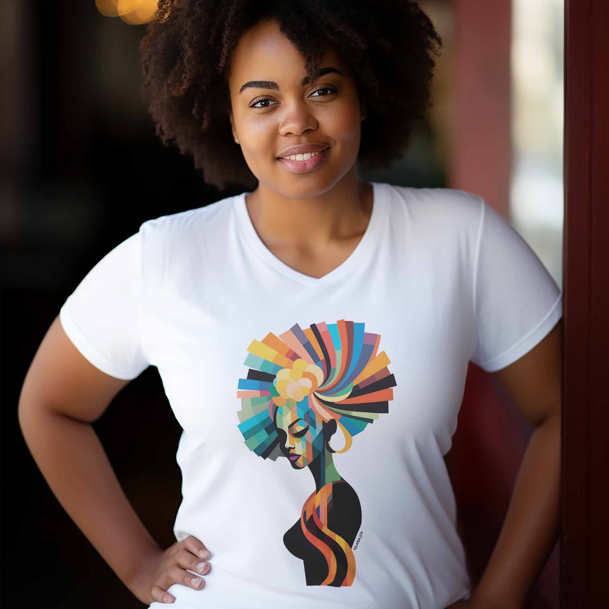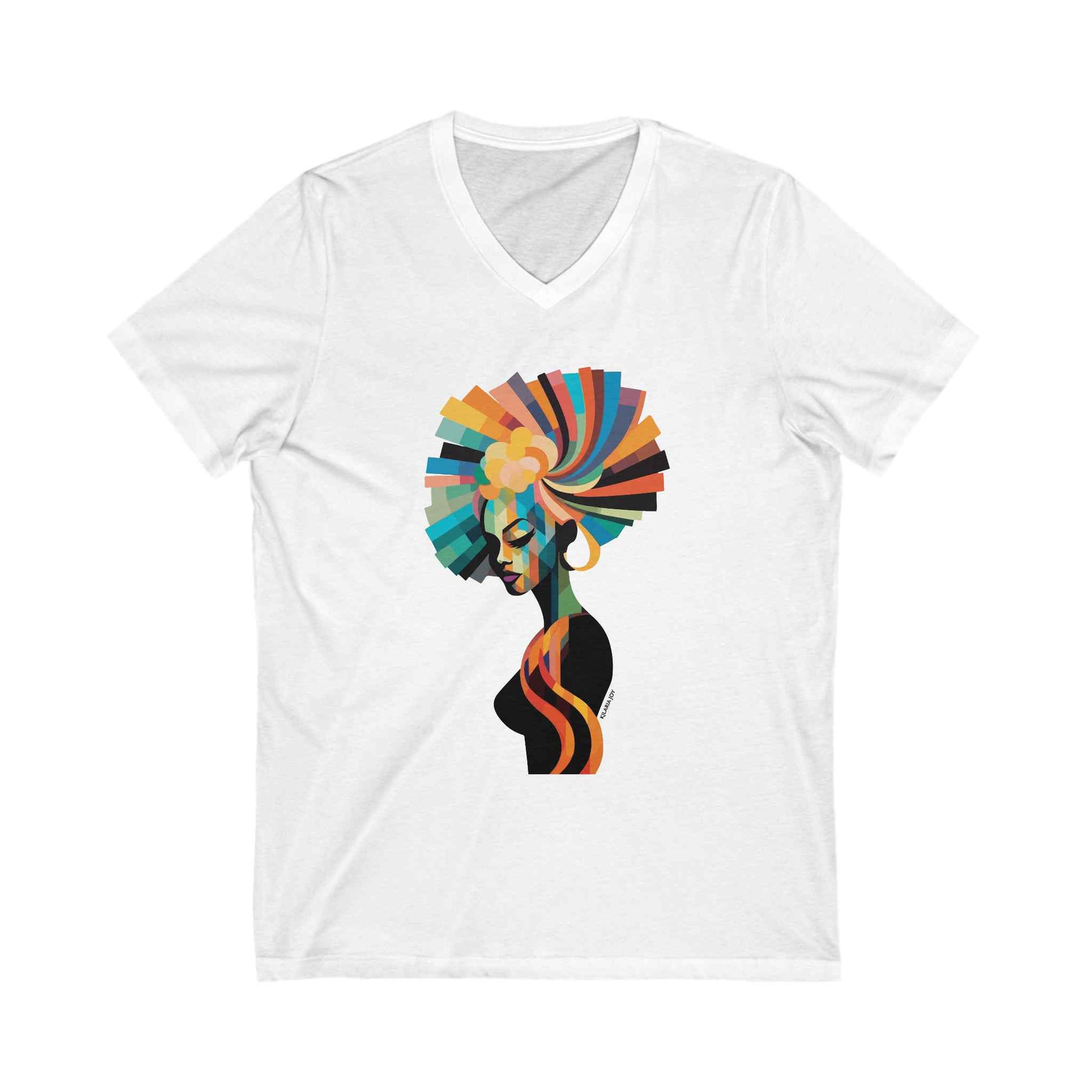 Reflect your royalty with our Crown of Colors Women's Premium V-neck T-shirt, made of luxurious premium quality fabric! This shirt showcases a stunning silhouette crowned with a kaleidoscope of colors - a beautiful representation of the vibrancy, power, and versatility of womanhood. Enjoy the softness and comfort of this 100% cotton jersey fabric, a perfect choice for those who appreciate comfort and quality in their wardrobe. Be bold, be you, and let your colorful crown shine!