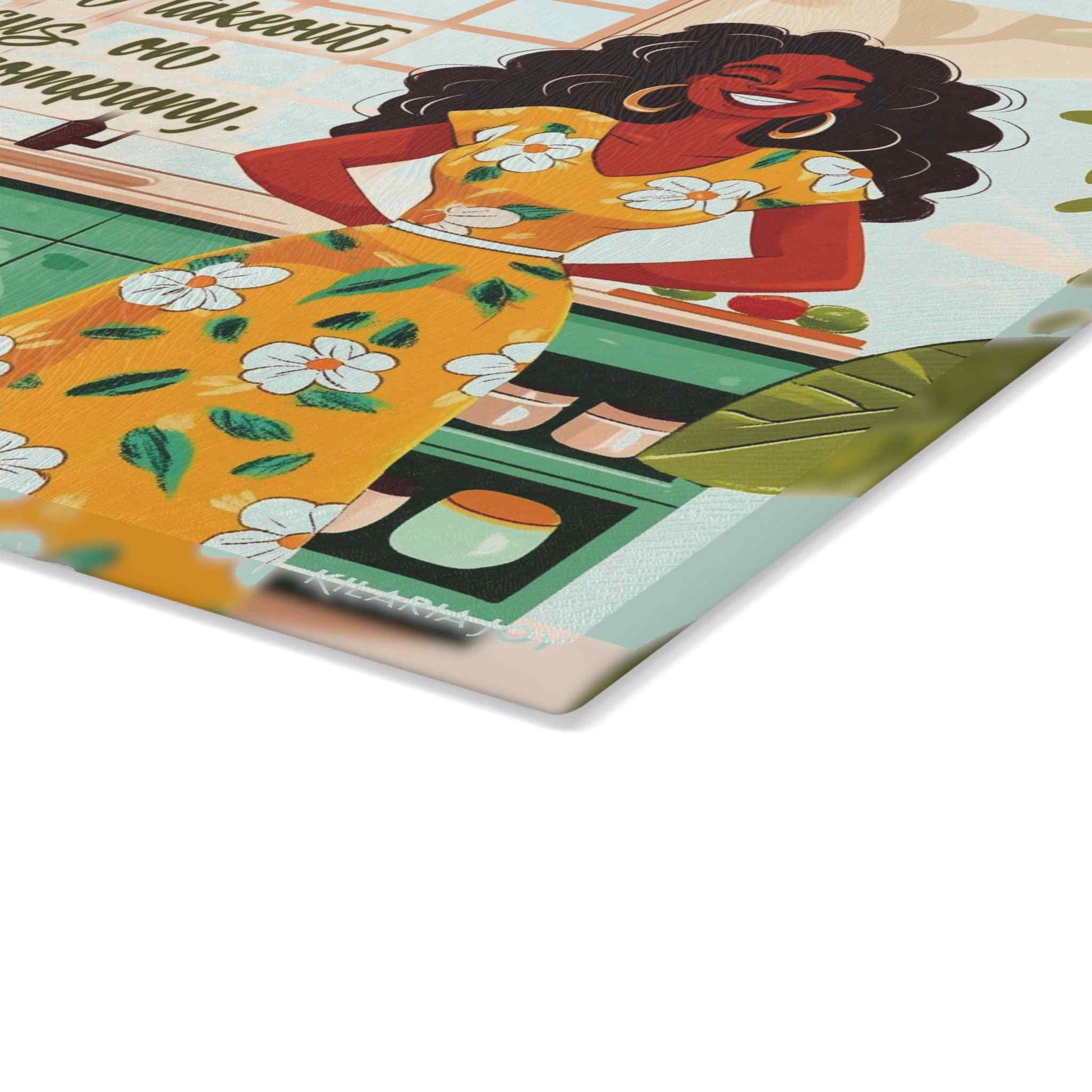 The Focus on Company Premium Glass Cutting Board is the ultimate kitchen vibe. Whether you're prepping a spread or simply using it as a charming display piece, this cutting board celebrates those moments when it's less about what's cooking and more about the laughter, love, and good company gathered around. Perfect for the hostess who knows that in her kitchen, it's all about the people, not the menu!