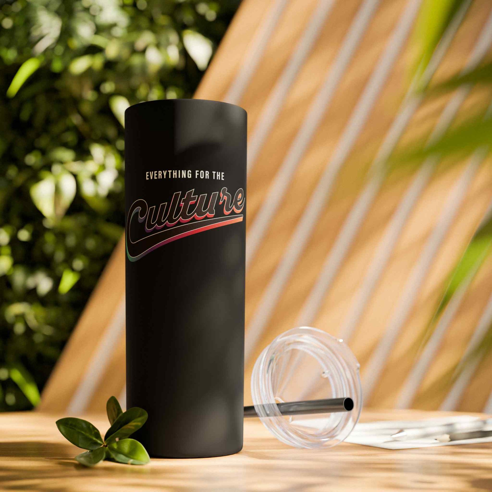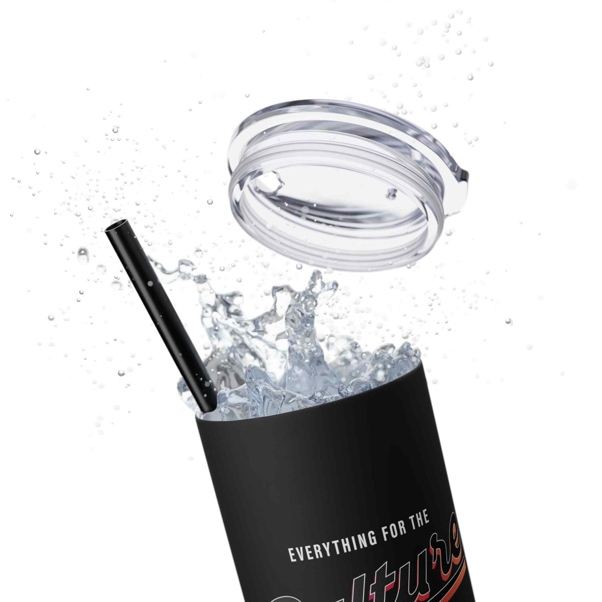 Stay hydrated with purpose with the 'For the Culture' tumbler, the drinkware that's just as dedicated as you are. This isn't just a tumbler; it's a statement piece, a testament to the vibe, the vision, and the essence that fuels your everyday hustle. Drink from it proudly and let the world know: your commitment to the culture doesn't pause for anything—not even hydration.
