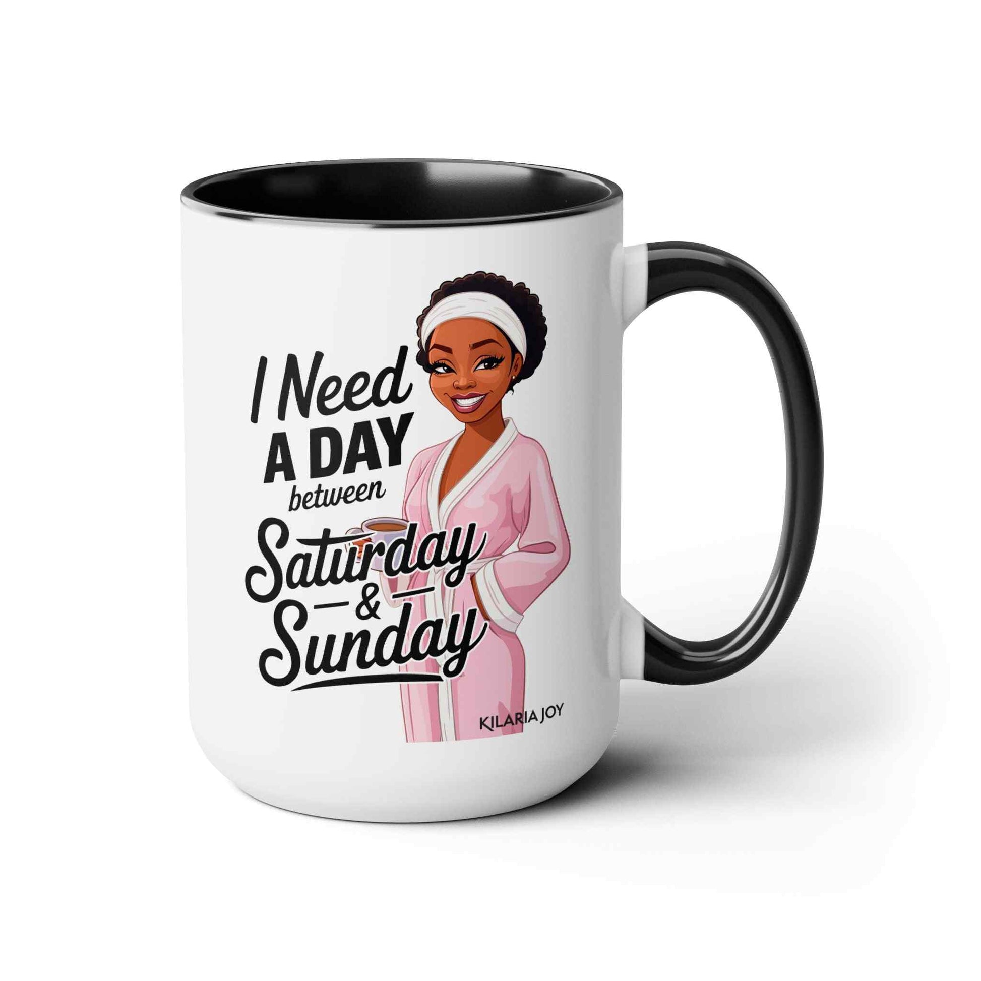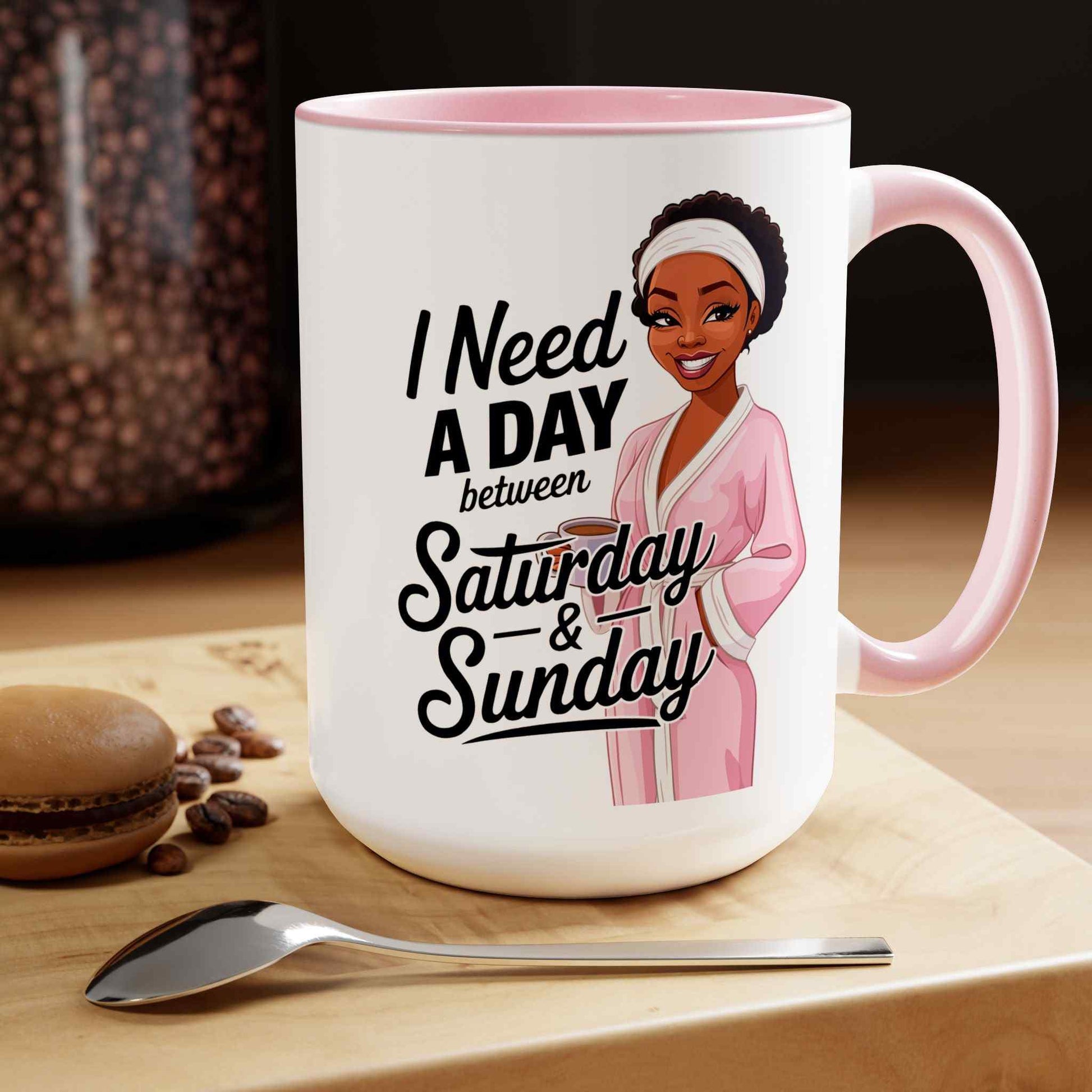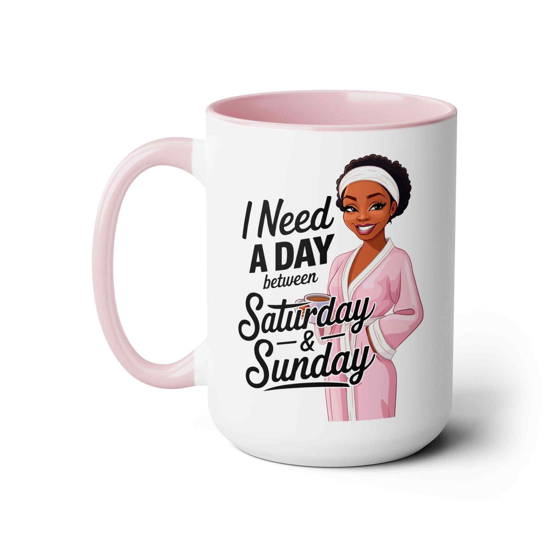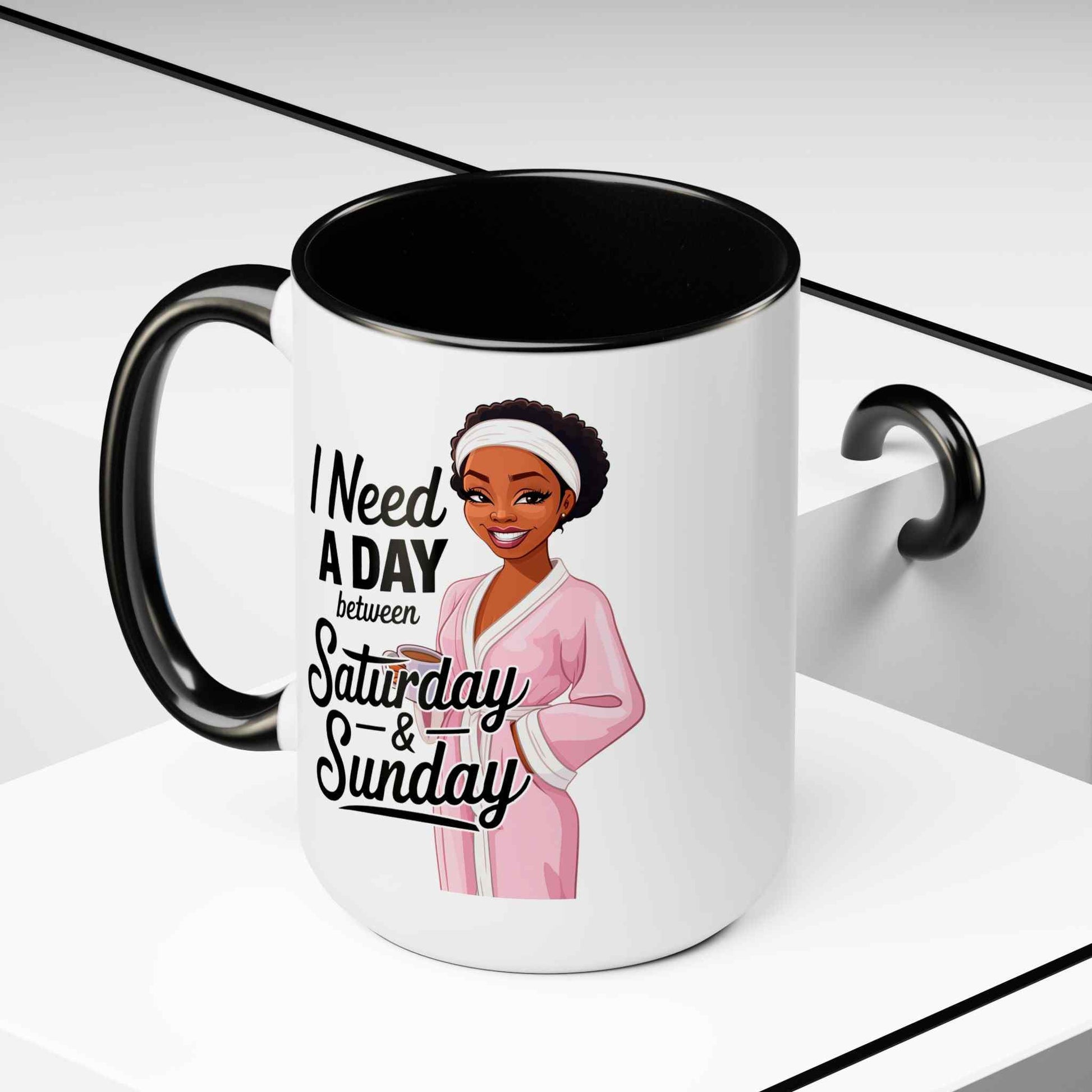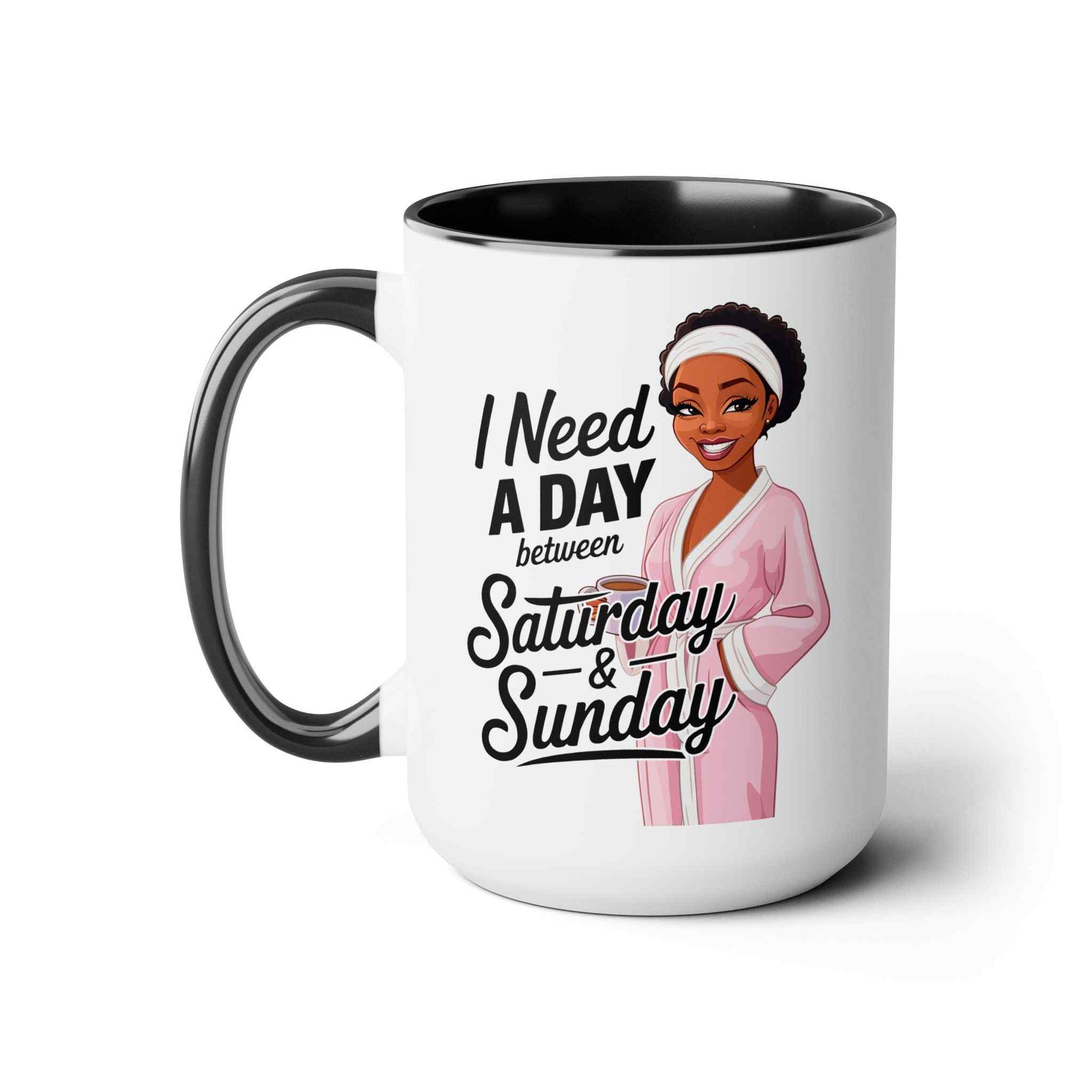 The Need a Day Two-Tone Coffee Mug is here to keep it real—because we all know the weekend could use a little extra cushion. Sip your favorite brew from this mug and dream about that magical day between Saturday and Sunday that we all deserve!