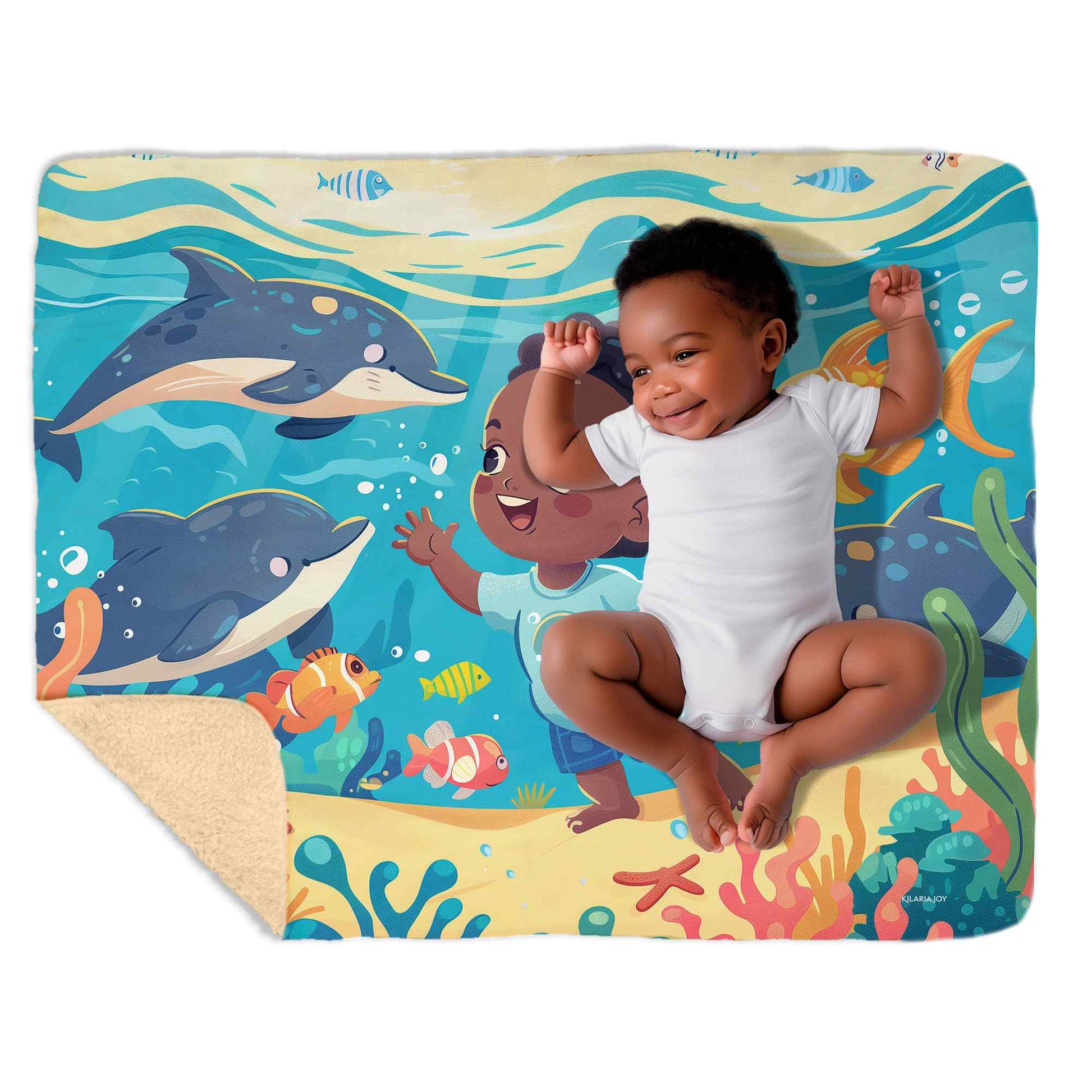The Ocean Explorer Snuggly Sherpa Baby Blanket is your baby's ticket to a world of adventure and comfort. This blanket wraps your little one in cozy warmth, making every nap time fun for your explorer. Perfect as a gift, it's designed to bring the wonders of the ocean to your baby's dreams.