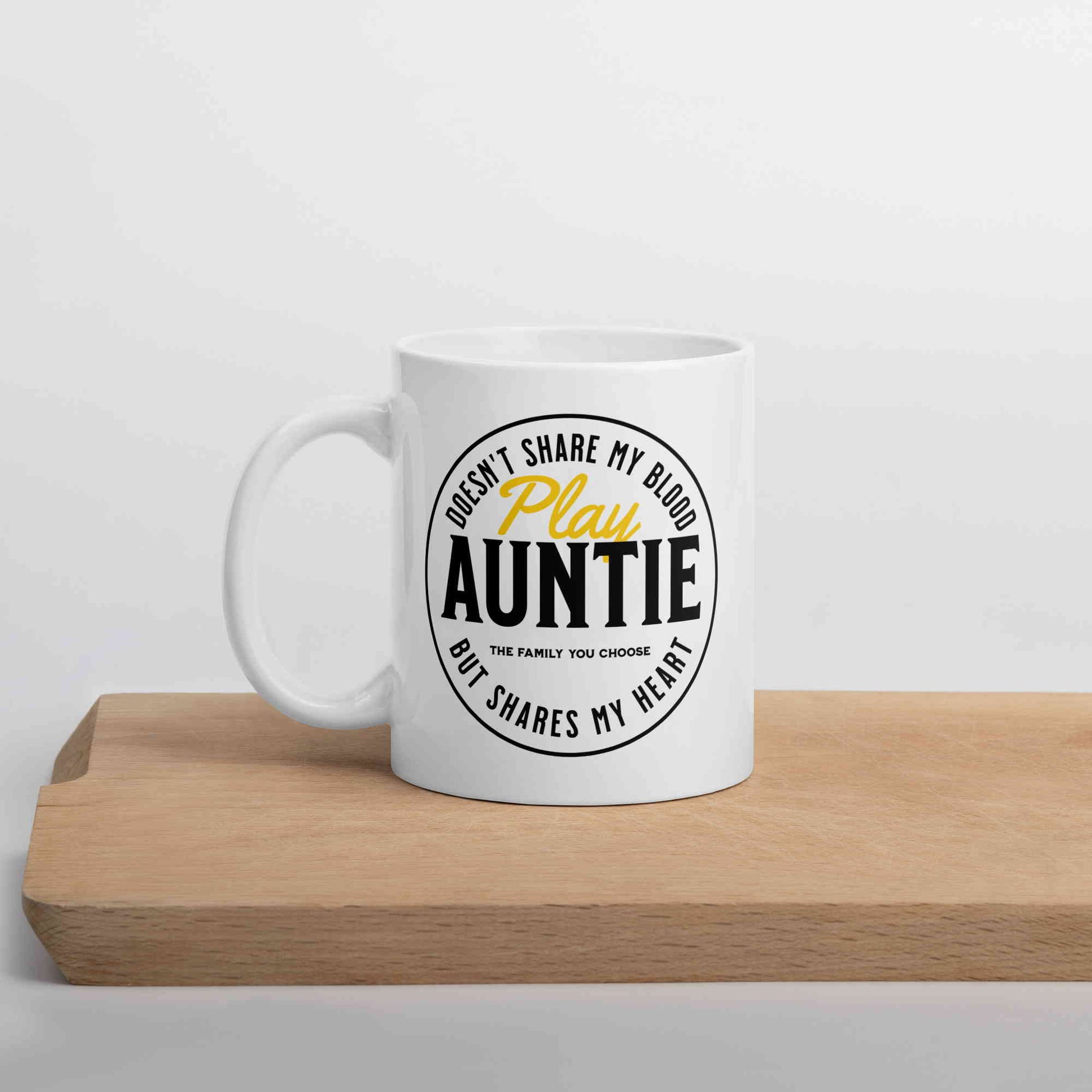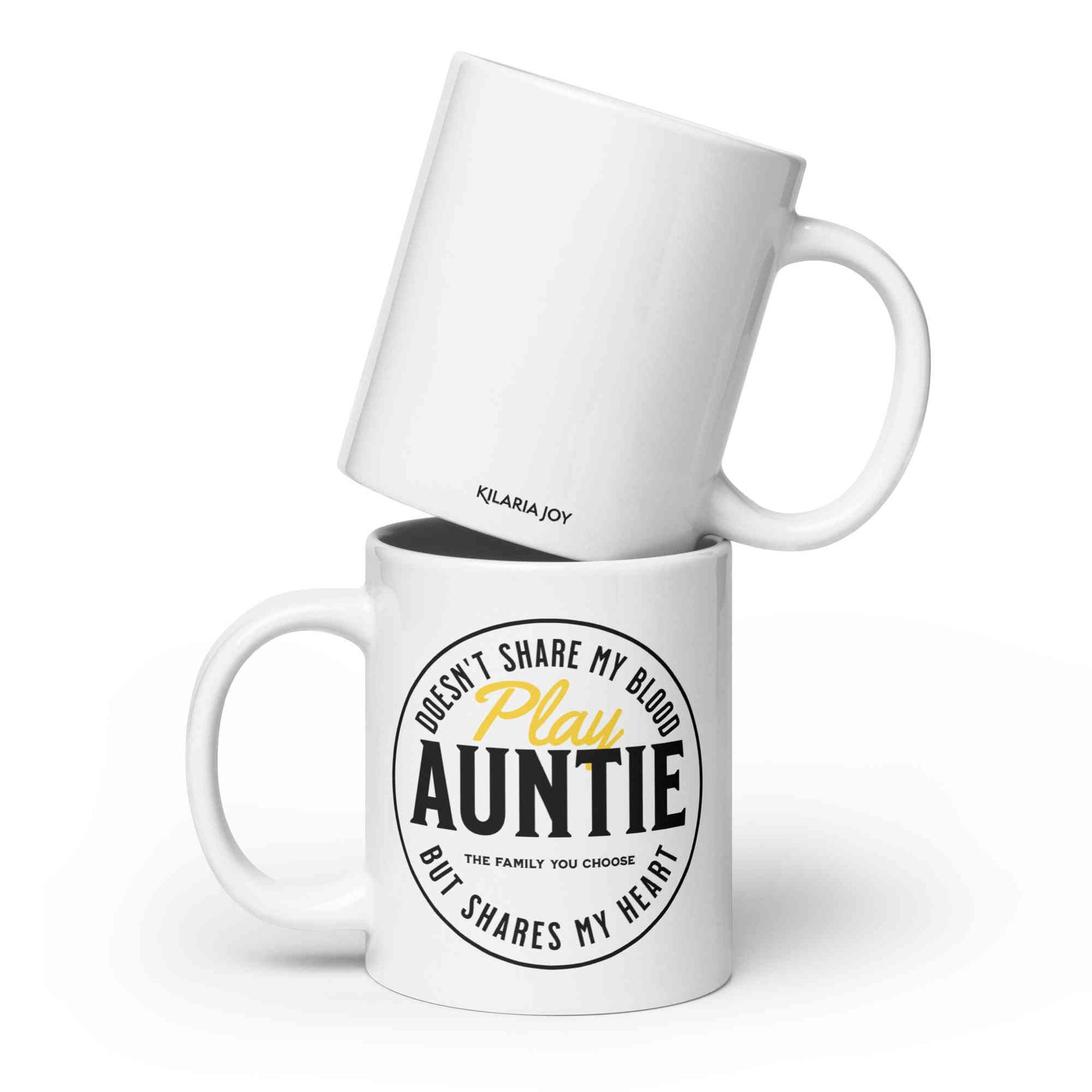 Here's to the extraordinary aunts who've embraced their special role with open hearts – no DNA test needed! Introducing our 'Play Auntie' ceramic mug, a tribute to these incredible women who bring joy and love into our lives. This elegant white mug is available in 11oz, 15oz, and 20oz sizes, perfect for indulging in your morning coffee or unwinding with a soothing cup of tea. Crafted from premium ceramic, it boasts a comfortable c-style handle for an enjoyable hold. This microwave and dishwasher-safe mug seamlessly combines beauty and practicality. Whether it's a heartfelt gift for the 'play auntie' in your world or a delightful treat for yourself, this mug delivers a daily dose of love and recognition with every sip. Made from 100% ceramic with a lustrous finish, and it's lead and BPA-free. Cheers to the amazing aunts who make life sweeter, one cup at a time!