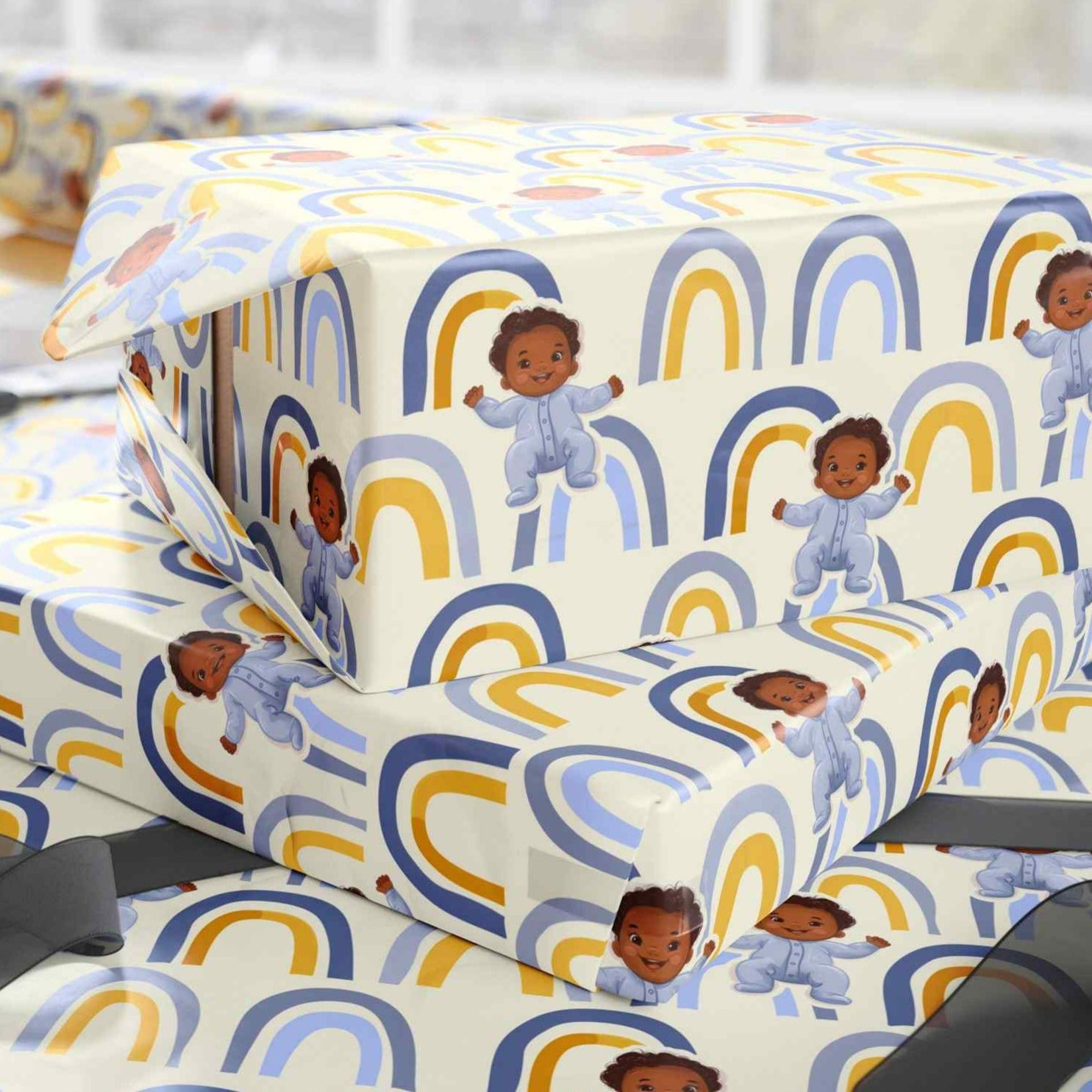 The Rainbow Dreams Wrapping Paper is the perfect touch for your gift. With its vibrant rainbows and adorable baby illustrations, this wrap brings a burst of happiness and charm to any present. Get ready to make your gift stand out and shower the little one with all the love and joy they deserve!
