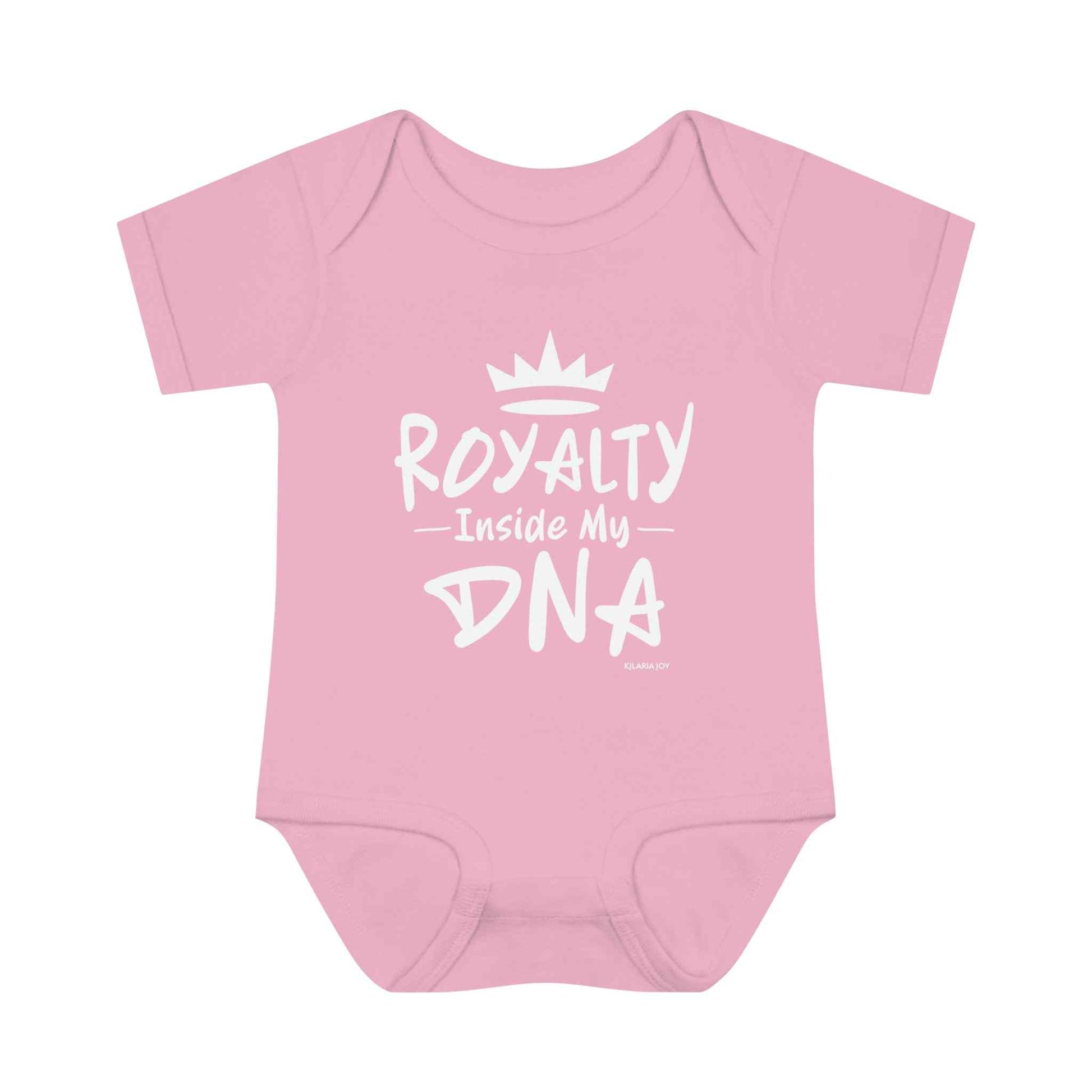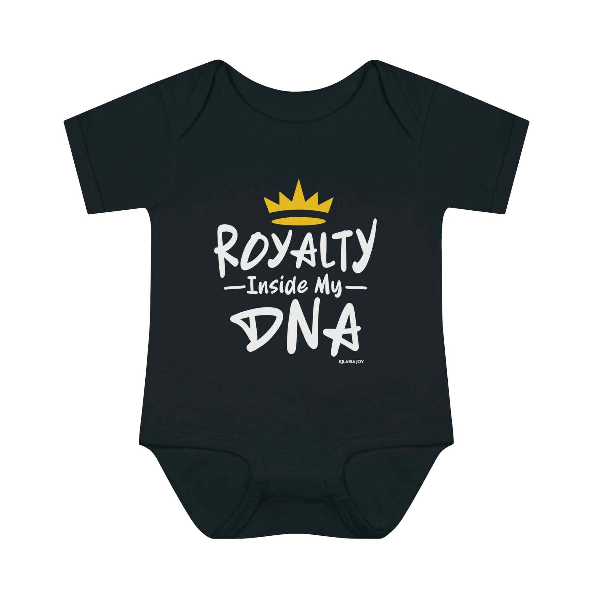 The Royal DNA Infant Baby Bodysuit will elevate your little one's wardrobe. This statement piece is crafted with love and designed to celebrate the essence of royalty that your mini-me will be shining bright with, while serving looks all day long.