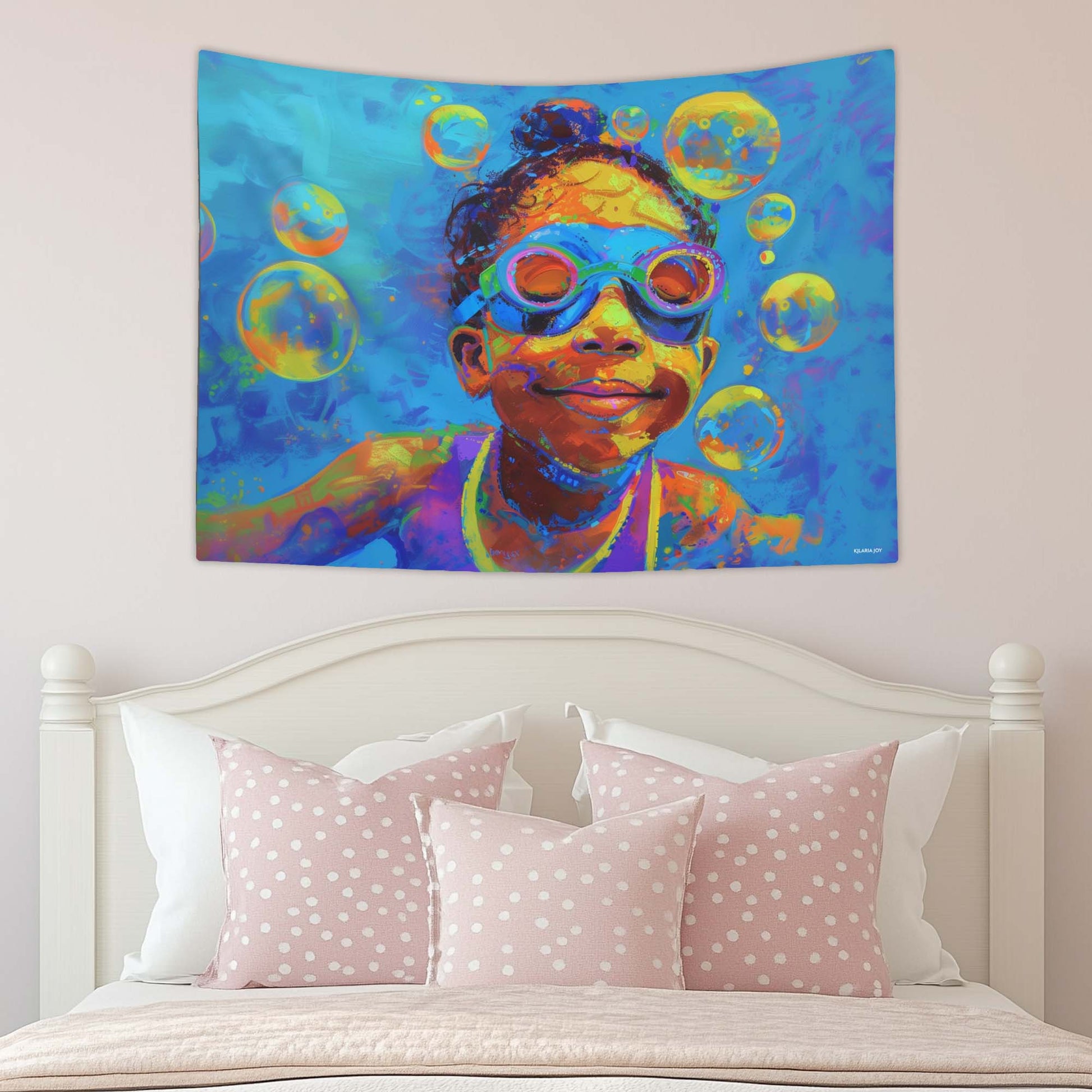 The Splash of Joy Girl's Wall Tapestry brings a burst of color and happiness to any room, perfect for brightening up your little one's space with love and light.