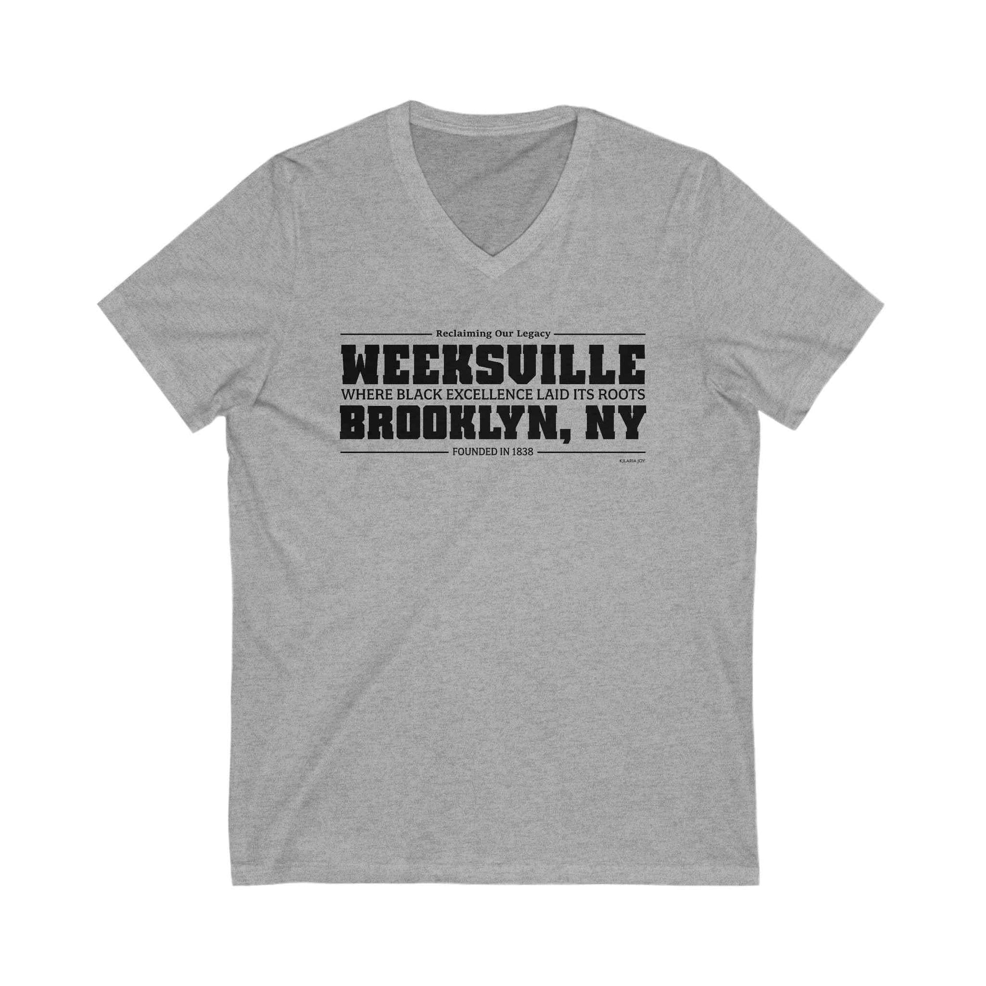 Rock the Weeksville Women's Premium V-neck T-shirt, part of our 'Reclaiming Our Legacy' collection. This historic Brooklyn enclave, established in the 19th century by visionary Black men like James Weeks, was more than a neighborhood; it was a fortress of freedom and self-determination. Weeksville stands as a powerful symbol of what was possible for free Black communities – a place where education, land ownership, and political power were not just dreams but realities. Embracing this legacy, remember Weeksville as more than a place; it's a testament to the strength, ingenuity, and enduring spirit of our ancestors who built sanctuaries of prosperity and hope in their quest for a dignified life.